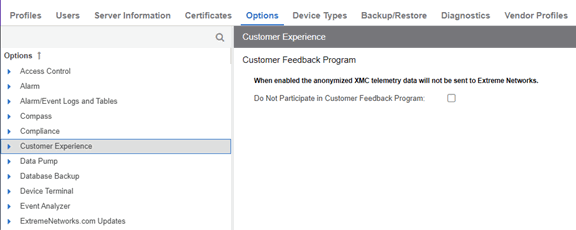 ExtremeCloud IQ Site Engine occasionally attempts to contact customers regarding usage and license data through its Customer Feedback Program.