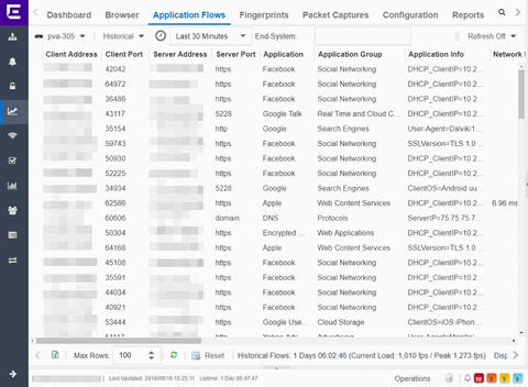The Historical Flow table in the Application Flows tab displays historical flow data that you can use to analyze trends in your network. The Historical Flow table is not designed for long-term flow collection.
