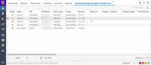 Accessible from the Analytics tab in ExtremeCloud IQ Site Engine, the Insights Dashboard displays an overview of application usage on your network, as well as network activity statistics based on client/server, application, industry, and response time.