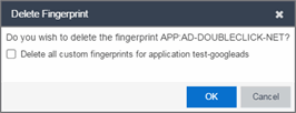 - You can delete only the selected fingerprint or select the option to delete all custom fingerprints that match the application name of the selected fingerprint.
