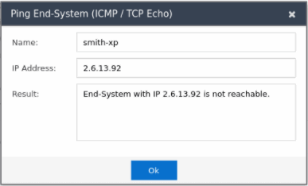 Select Ok to close the window. Select another end-system and the Ping End-System tool option to ping that end-system.NOTE: You can select one end-system at a time to ping. If you select multiple end-systems and then select Ping, the Ping option is not available. The Ping option is also not available if no end-systems are displayed in the table.