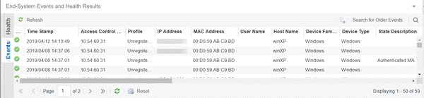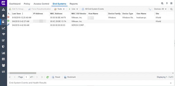 - Opens the End-System Events tab, where you can view information about events for all end-systems accessing your network.