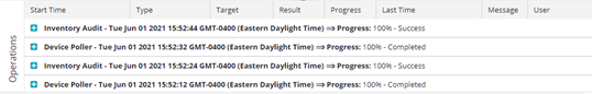 - The Clock icon opens the Operations table at the bottom of the window. A blue dot on the icon indicates that the Operations table has updated. The table displays the status of any completed or currently occurring operations and details about the process. To close the table, select the clock icon again.