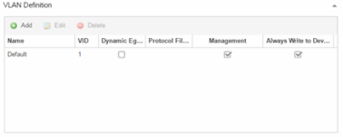 - Add the VLANs that are used on your devices on the VLAN Definition tab by selecting the Add button and entering the Name and VID.