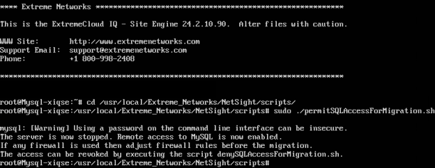 sudo ./permitSQLAccessForMigration.shThe version 24.2 source server stops and remote access to MySQL is granted: