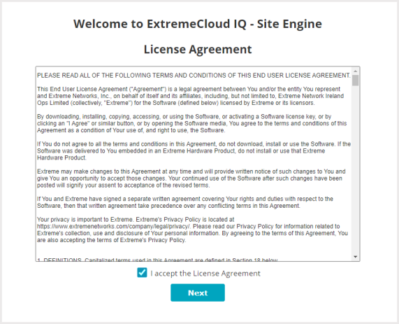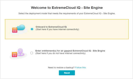 | NOTE: | The Welcome screen provides a link to the procedure for restoring ExtremeCloud IQ Site Engine from backup. |